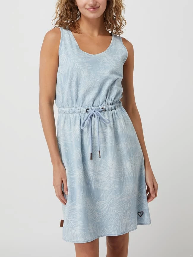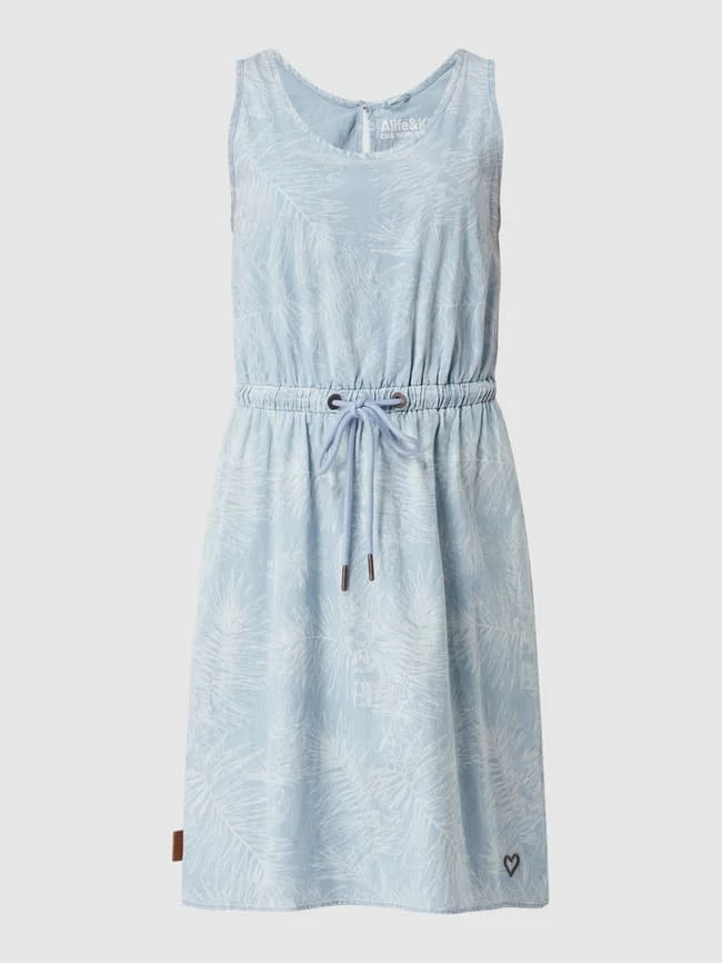 Das Kleid von alife and kickin ist aus Bio-Baumwolle und Elasthan gefertigt. Es zeigt sich in taillierter Passform mit Allover-Muster und Tunnelzug.