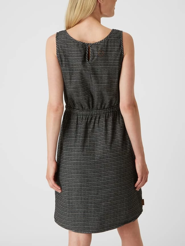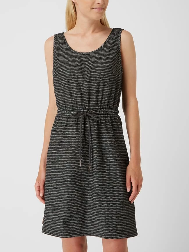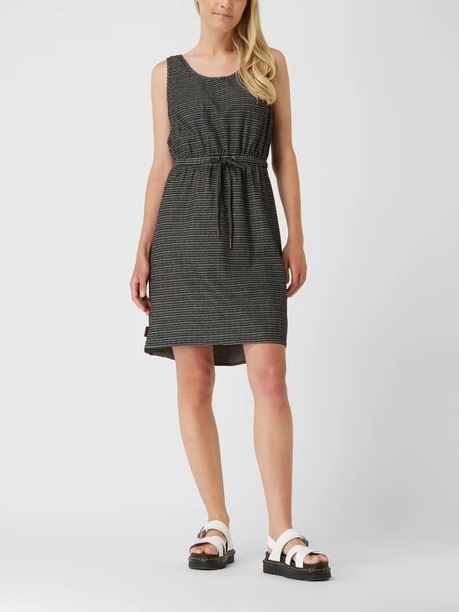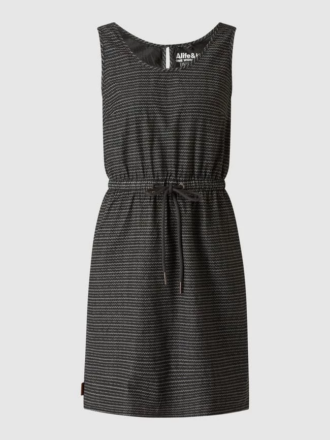 Das Kleid von alife and kickin ist aus Bio-Baumwolle und Elasthan gefertigt. Es zeigt sich in taillierter Passform mit Allover-Muster und Tunnelzug.