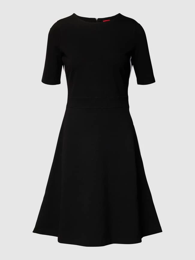 Das knielange Kleid von HUGO ist aus einem Viskose-Mix mit Stretch-Anteil gefertigt und körpernah geschnitten. Es zeigt sich im unifarbenen Design mit Galonstreifen.