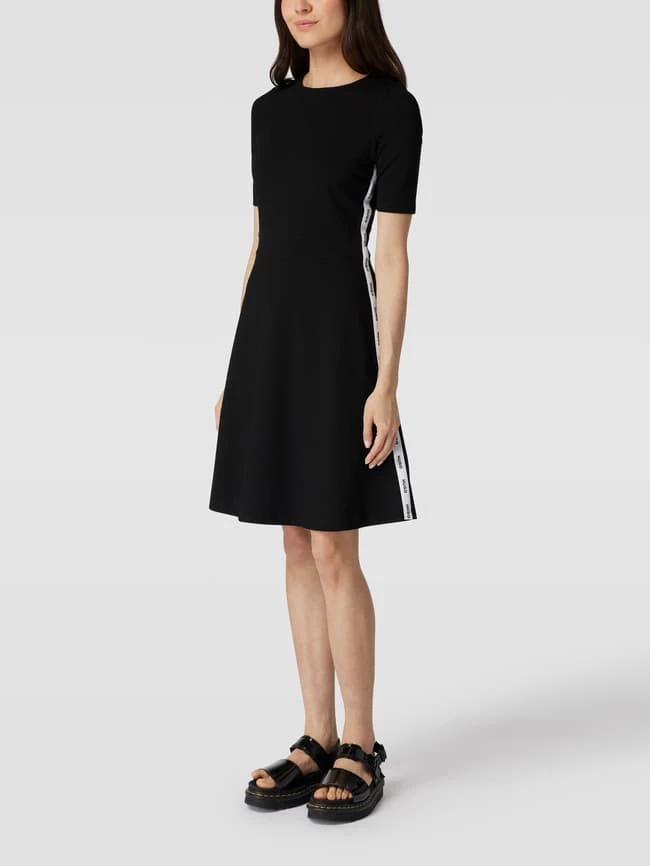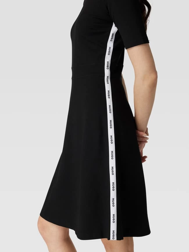 HUGO Knielanges Kleid Mit Galonstreifen Modell ‘Davinca’ – Schwarz