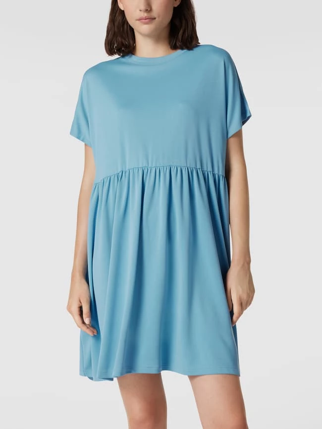Das T-Shirt-Kleid von Jake*s Casual ist aus einem Modal-Mix gefertigt und locker geschnitten. Es zeigt sich mit Rundhalsausschnitt, elastischem Tailleneinsatz und überschnittenen Ärmeln.
