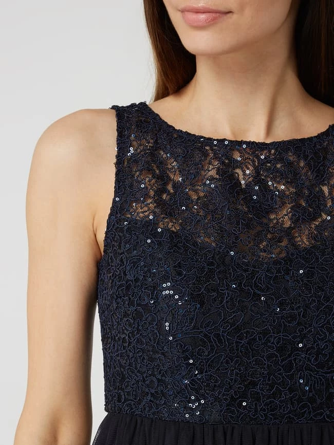 Jake*s Cocktail Cocktailkleid Aus Mesh Mit Floralen Zierborten – Marineblau Meliert