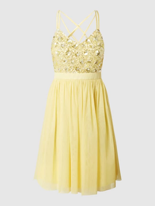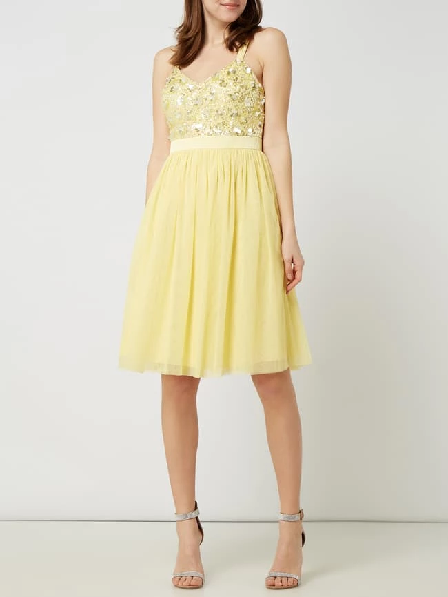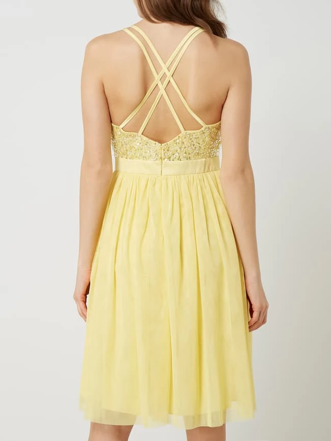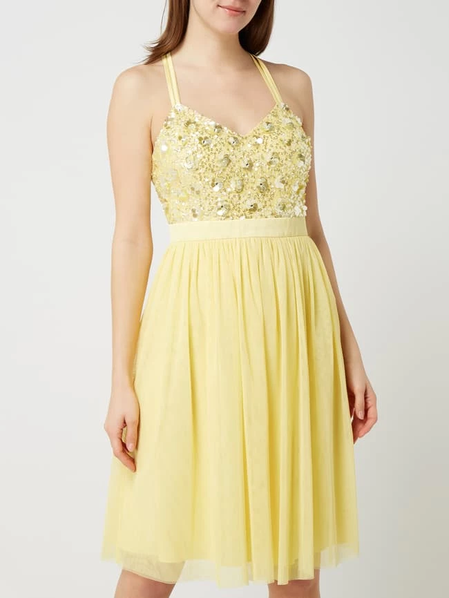 Jake*s Cocktail Cocktailkleid Aus Mesh Mit Pailletten-Applikationen – Hellgelb