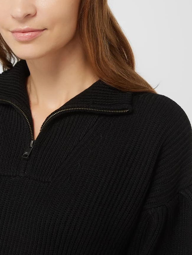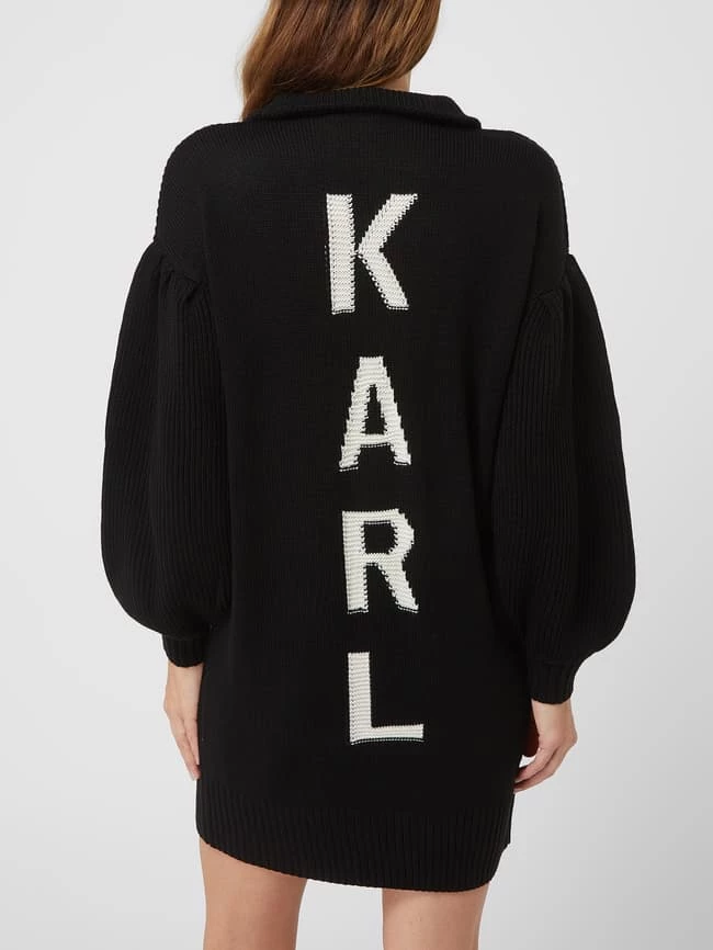 Das Strickkleid von KARL LAGERFELD ist aus einer Wollmischung gefertigt. Es kommt in leicht ausgestellter Passform mit Stehkragen, kurzem Reißverschluss und Logo.