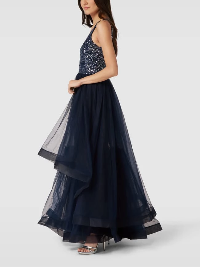 Das Abendkleid von Lace & Beads ist aus strapazierfähigem Material gefertigt und tailliert geschnitten. Es kommt mit Paillettenbesatz, Herz-Ausschnitt und ausgestellter Rockpartie sowie Vokuhila-Optik.