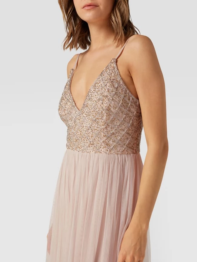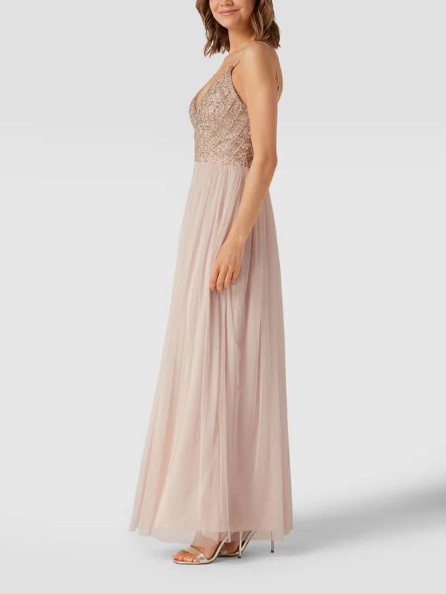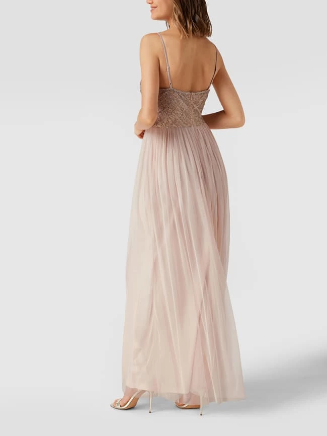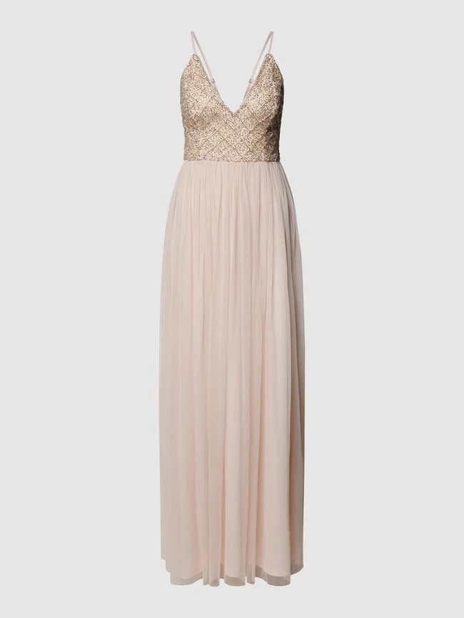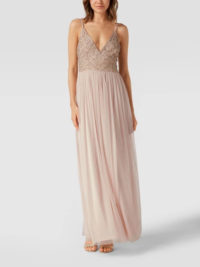 Das Abendkleid von Lace & Beads ist aus strapazierfähigem Material gefertigt und tailliert geschnitten. Es zeigt sich mit schmalen Trägern, V-Ausschnitt, Besatz aus Ziersteinen sowie doppellagigem Rockteil.