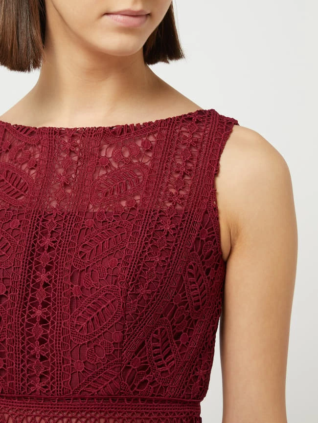 Luxuar Cocktailkleid Aus Mesh Und Spitze – Bordeaux Rot