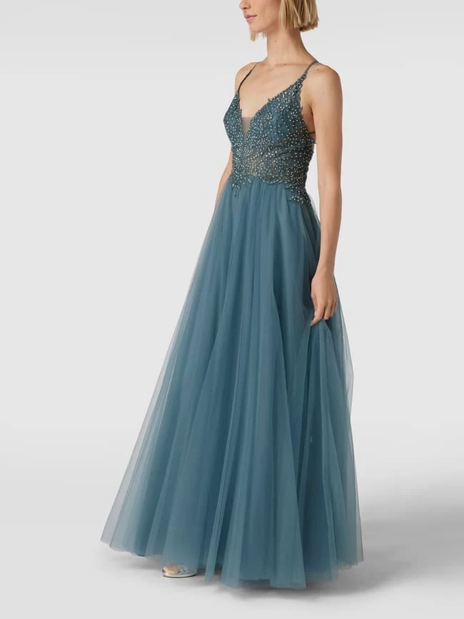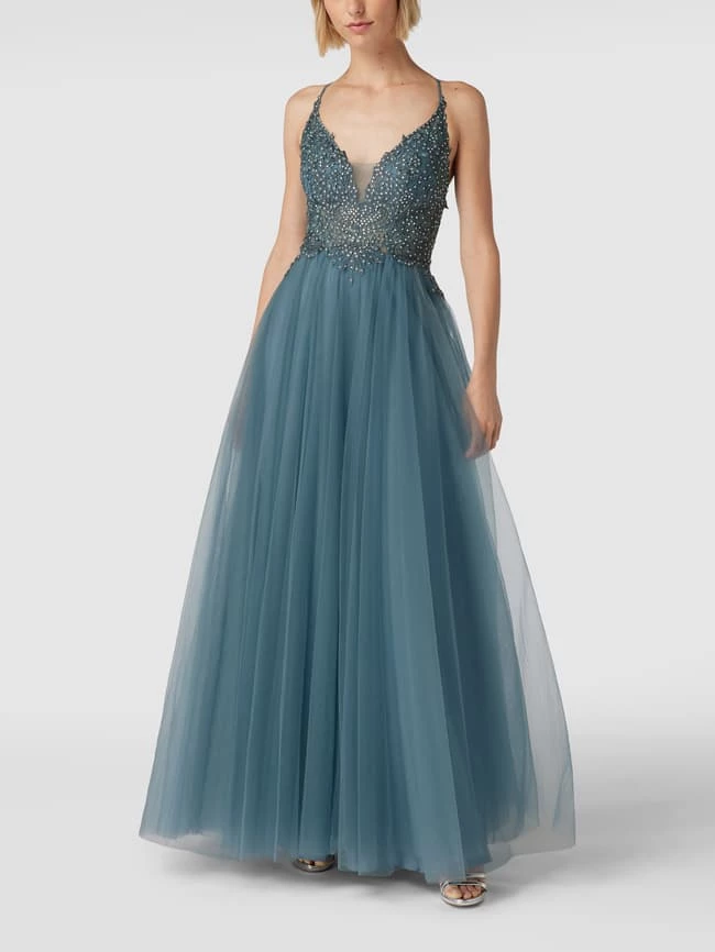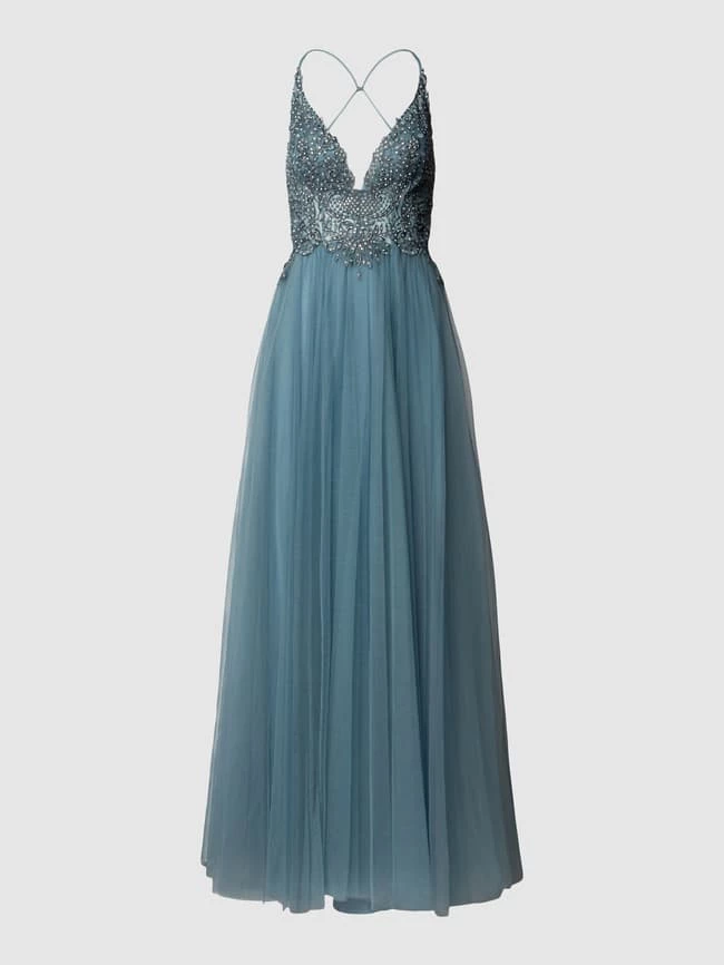 Mascara Abendkleid Mit Ziersteinbesatz – Rauchblau