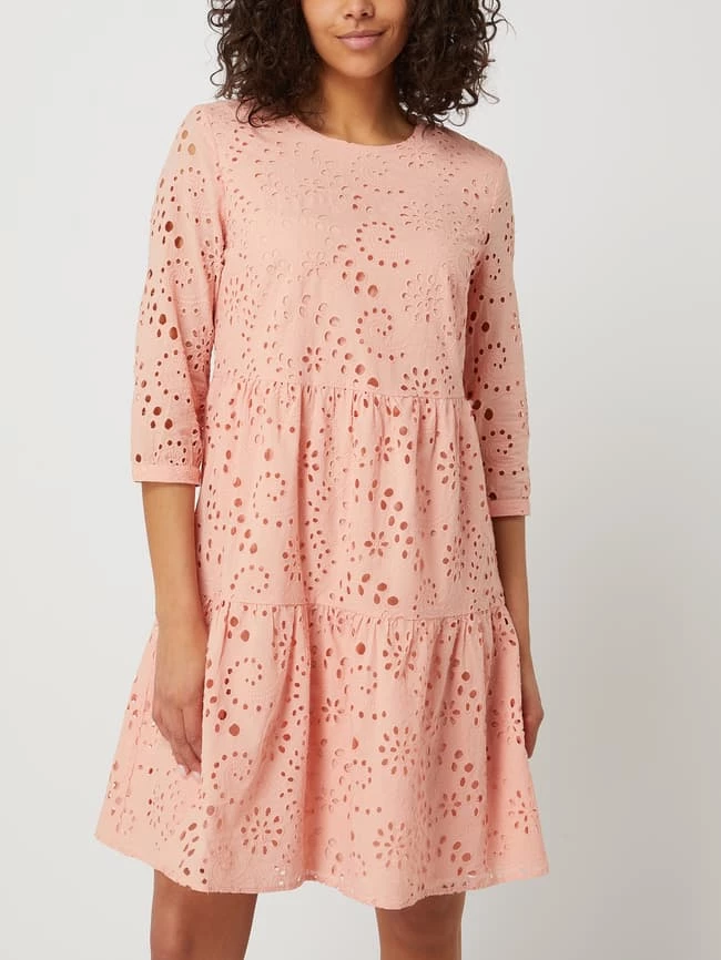 Montego Kleid Aus Baumwolle Mit Lochstickereien – Koralle