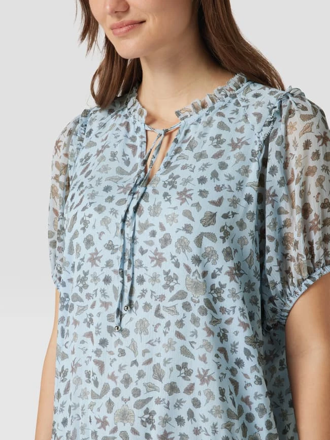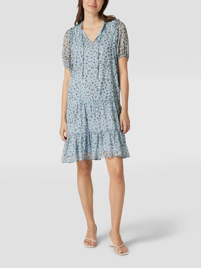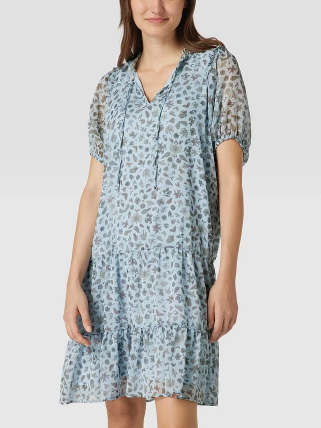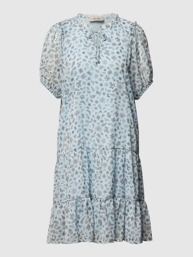 Das knielange Kleid von MOS MOSH ist aus strapazierfähigem Material gefertigt und gerade geschnitten. Es kommt mit Allover-Muster, kurzen Puffärmeln sowie Schlüsselloch-Ausschnitt mit Schnürung.