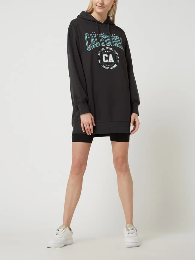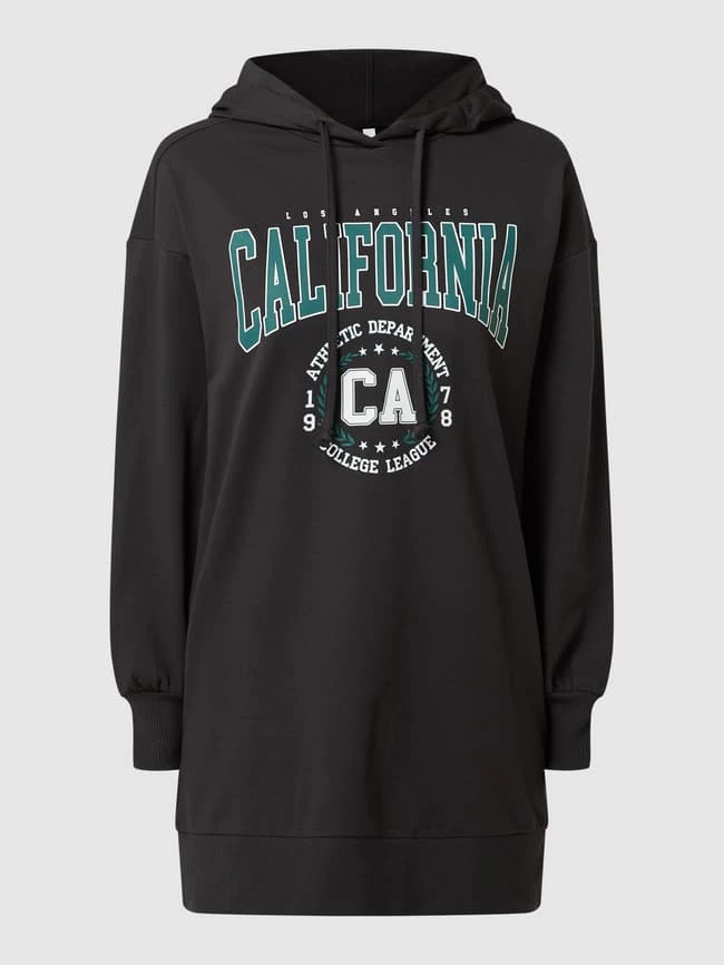 Das Sweatkleid von ONLY ist aus einer Baumwollmischung gefertigt und locker geschnitten. Es zeigt sich im College-Look mit Kapuze und Prints.