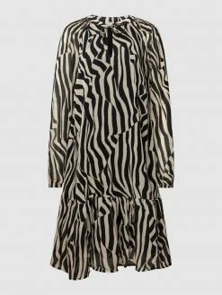 Das Kleid von Opus ist aus einer Materialmischung mit Stretch-Anteil gefertigt und leicht ausgestellt geschnitten. Es zeigt sich mit Umlegekragen, durchgehender Knopfleiste und 3/4-Arm.