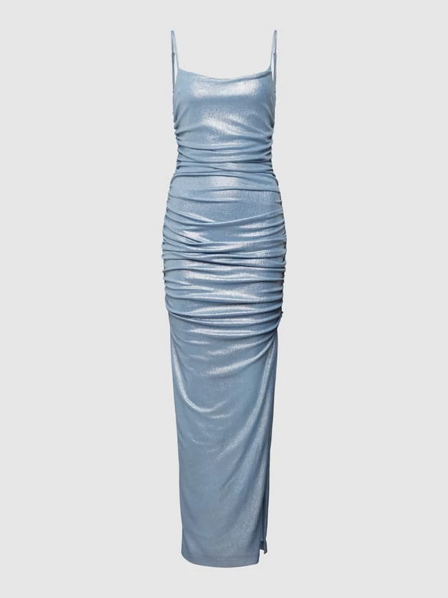 Das Abendkleid von Paradi ist aus einem Material-Mix mit Elasthan-Anteil gefertigt und körpernah geschnitten. Es zeigt sich in schimmernder Optik mit Raffungen.