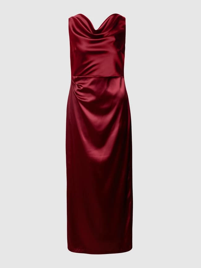 Das Abendkleid von Paradi ist aus strapazierfähigem Material gefertigt und eng anliegend geschnitten. Es kommt in Satin-Optik mit Wasserfall-Ausschnitt, Seitenschlitzen und breiten Trägern.