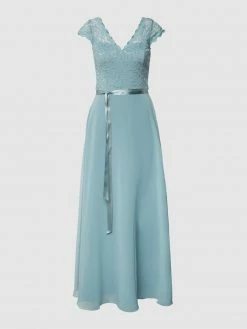 Swing Kurzärmeliges Abendkleid Mit Floralen Stickereien – Bleu