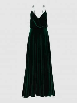 Unique Abendkleid Mit Gekreuzten Spaghettiträgern – Dunkelgrün