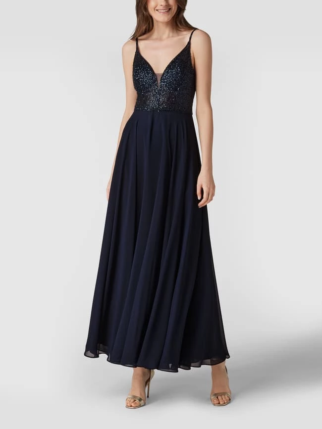 Swing Abendkleid Mit Paillettenbesatz – Marineblau