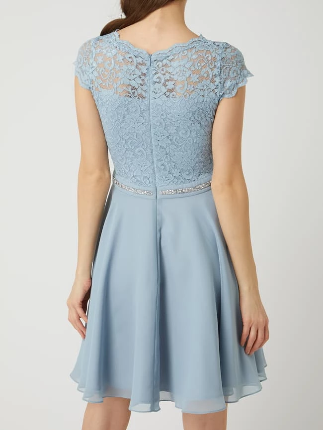 Das Cocktailkleid von SWING ist aus robustem Material gefertigt und leicht tailliert geschnitten. Es kommt mit Taillenpasse aus floraler Spitze, blickdichtem Unterrock und Rundhalsausschnitt.