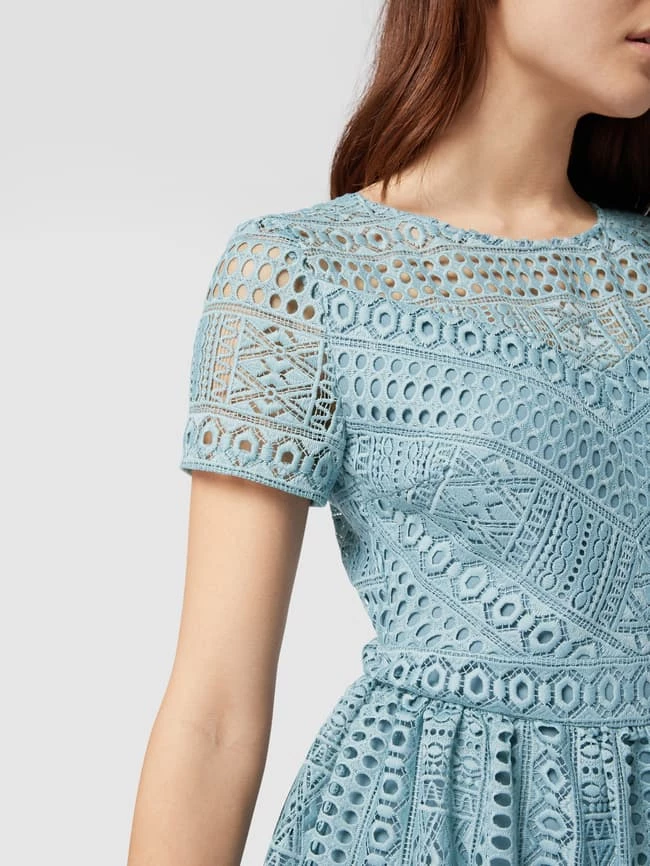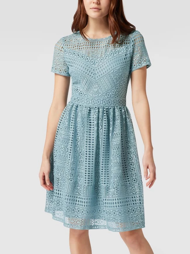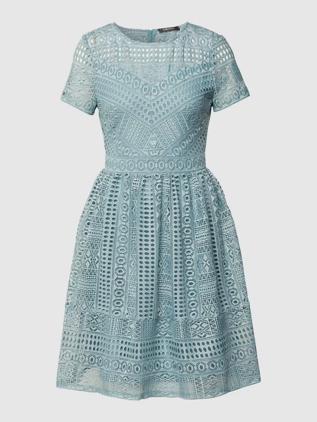 Swing Knielanges Cocktailkleid Mit Lochstickmuster – Bleu