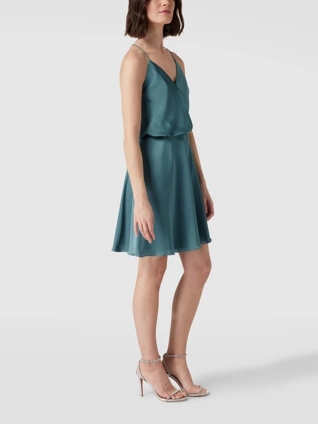 Das Cocktailkleid von unique ist aus strapazierfähigem Material gefertigt und tailliert geschnitten. Es kommt in Wickel-Optik mit Herzausschnitt, Spaghettiträgern und tiefem Rückenausschnitt.