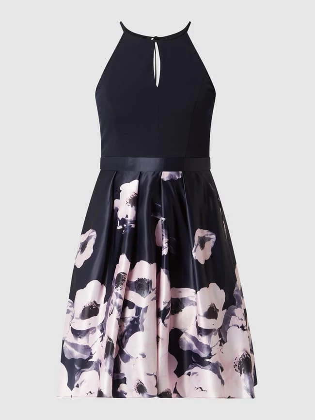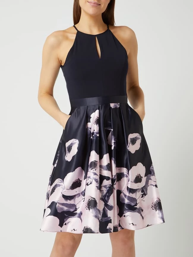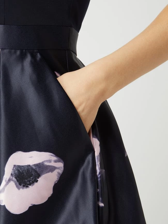 Das Cocktailkleid von Vera Mont ist aus leichtem Material gefertigt und tailliert geschnitten. Es kommt mit amerikanischem Ausschnitt, ausgestelltem Rockteil aus Satin und seitlichen Eingrifftaschen.