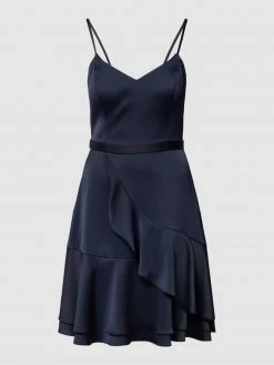 Das Cocktailkleid von Vera Mont ist aus einem Material-Mix mit Elasthan-Anteil gefertigt und tailliert geschnitten. Es kommt mit Volantrock, Taillenband und wattierten Pads.